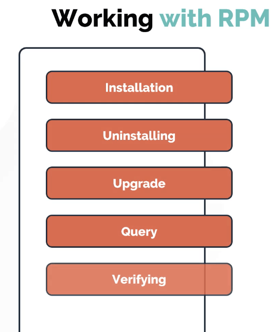 5 farklı moda sahiptir. Burada dikkat edilmesi gereken nokta RPM in dependenciess ler ile ilgilenmiyor oluşudur. Bu yüzden Higher Level Package Manager ler günümüzde kullanılmaktadır örneğin YUM.